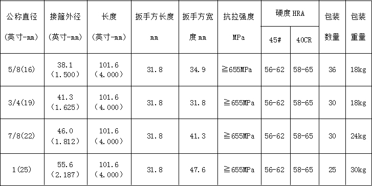 在使用時(shí),抽油桿接箍用于連接相同尺寸的抽油桿,異徑接箍用于連接不同尺寸的抽油桿或連接光桿和抽油桿柱。
